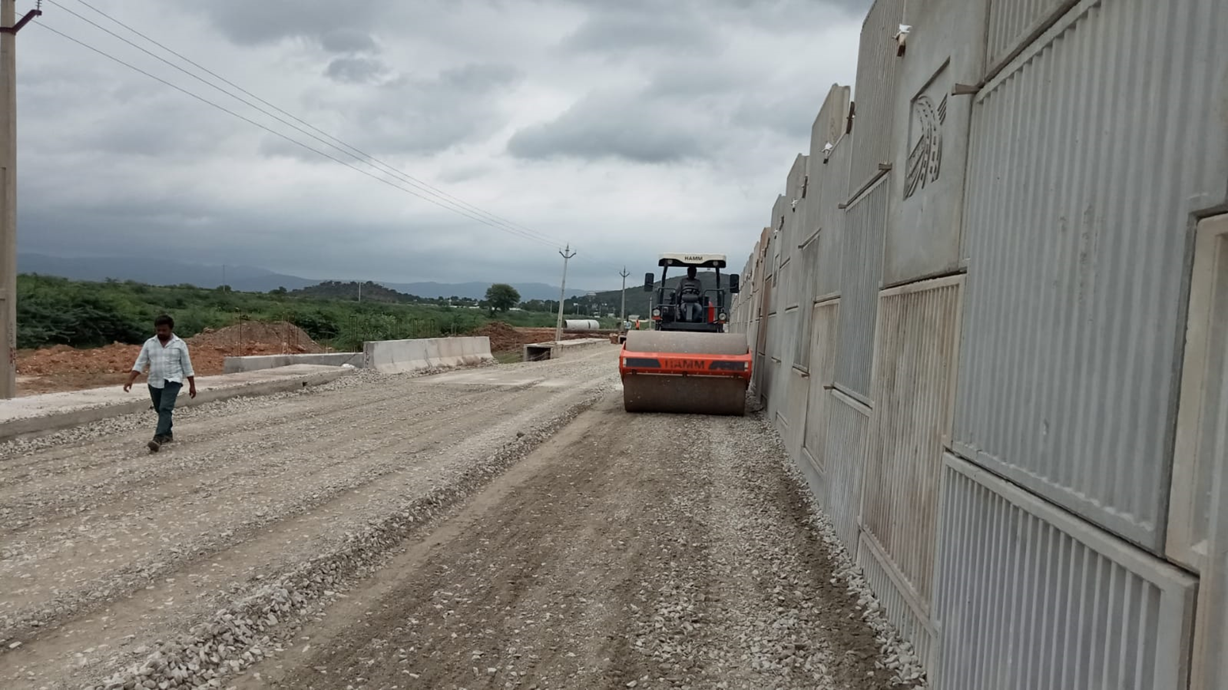 COMPACTION FOR WMM TOP IN PROGRESS AT KM 622+400 TO 622+500 LHS SR (Court Case Stretch)