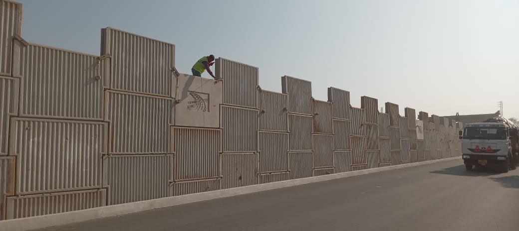 PLUMB CHECKING OF RE PANEL WORK IN PROGRESS AT CH 603+500 PLUMB CHECKING OF RE PANEL WORK IN PROGRESS AT CH 603+500